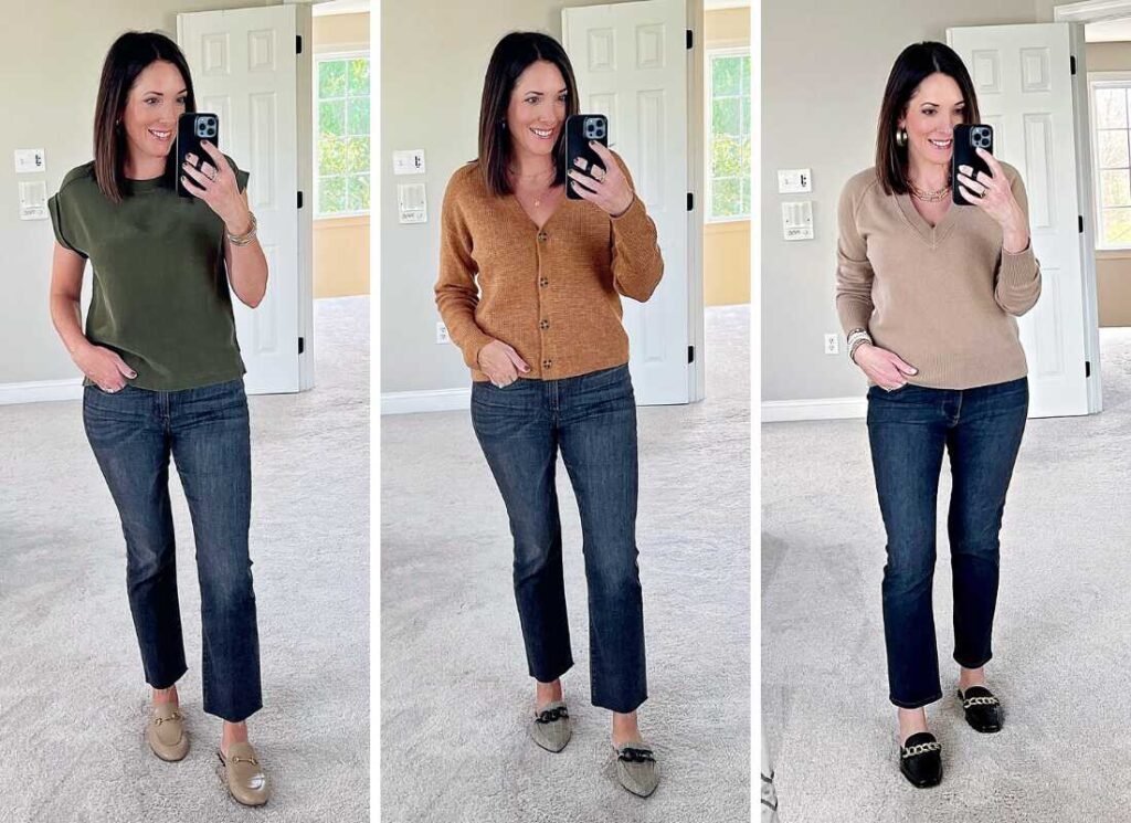 When it comes to styling loafers with straight-leg jeans, think effortless chic. This classic duo pairs beautifully for a look that effortlessly transitions from casual errands to lunch dates. Opt for a slightly cropped straight-leg cut to showcase the loafers and add a modern twist.